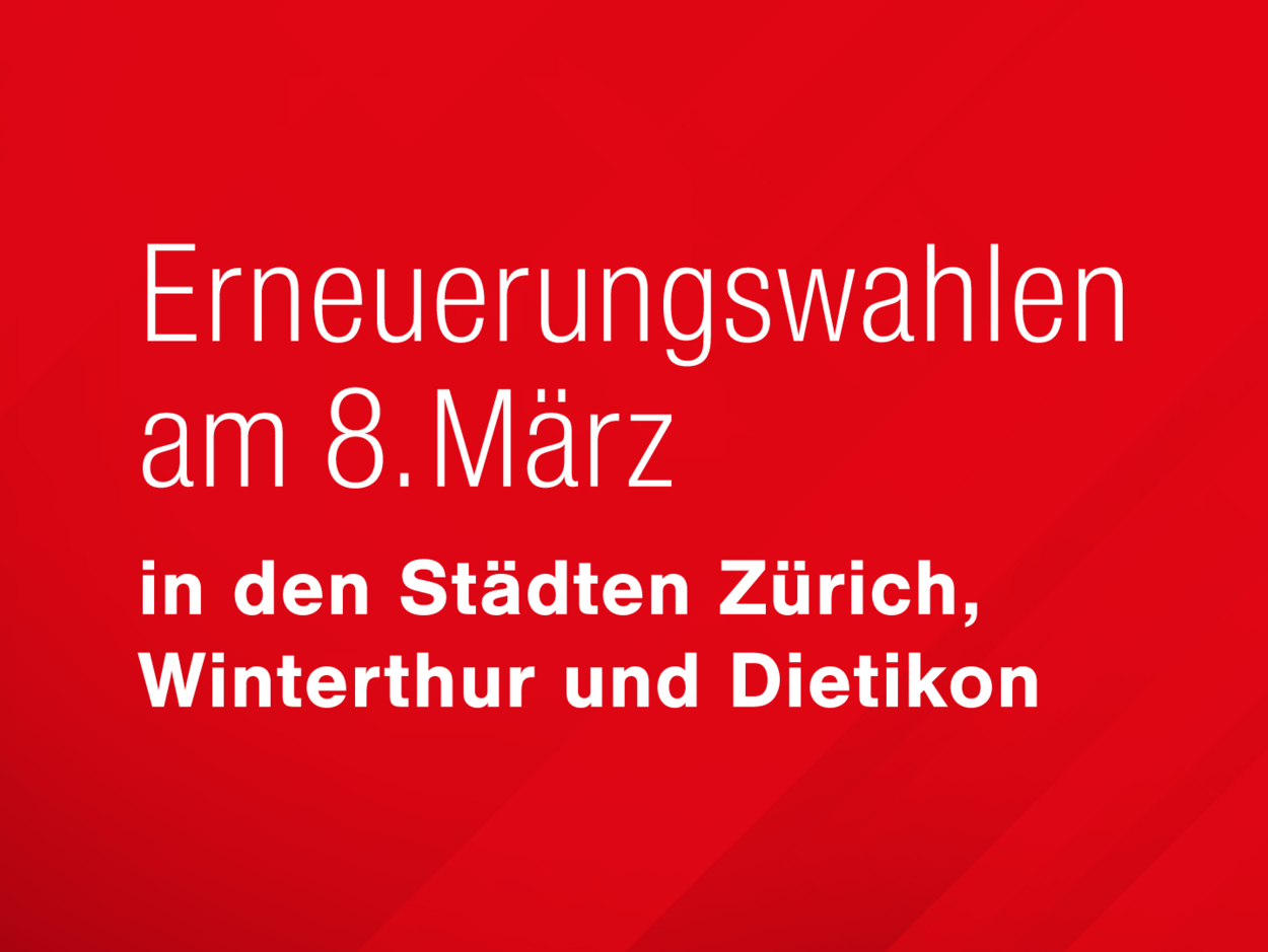 In den Städten Zürich, Winterthur und Dietikon finden die Erneuerungswahlen am 8. März 2026 statt. Die Gewerkschaften rufen zur Wahl von 95 Kandidat:innen auf. Alle vom GBKZ unterstützten Kandidat:innen sind Mitglieder in SGB Gewerkschaften und fühlen sich den oben aufgeführten Positionen verpflichtet. Aus diesen Gründen unterstützen wir ihre Wahl ausdrücklich.